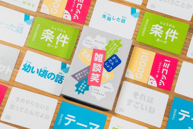 くだらなさが、距離を縮める。 『雑談笑』は、あえて“意味のない話”をすることで、 場の空気をゆるめ、自然と心の距離が縮まる不思議なカードゲームです。 普段の会話で「ちゃんと話さなきゃ」「オチをつけなきゃ」とプレッシャーを感じること、ありませんか? このゲームでは、その真逆。 いかに面白くない話をできるか を競います。 むしろ“くだらないほど強い”。 肩の力を抜いた雑談が、なぜか笑いを生み、場の関係性がふんわりほぐれていく。 家族・友人・初対面でも、誰でもすぐに打ち解けられるアイスブレイクに最適です。 https://camp-fire.jp/projects/830643/view プレイ人数:2〜6人 プレイ時間:10〜30分 対象年齢:6歳〜 制作 ゲームデザイン:石田瑛也 製作/開発:(株)遭遇設計 グラフィックデザイン:池田遥