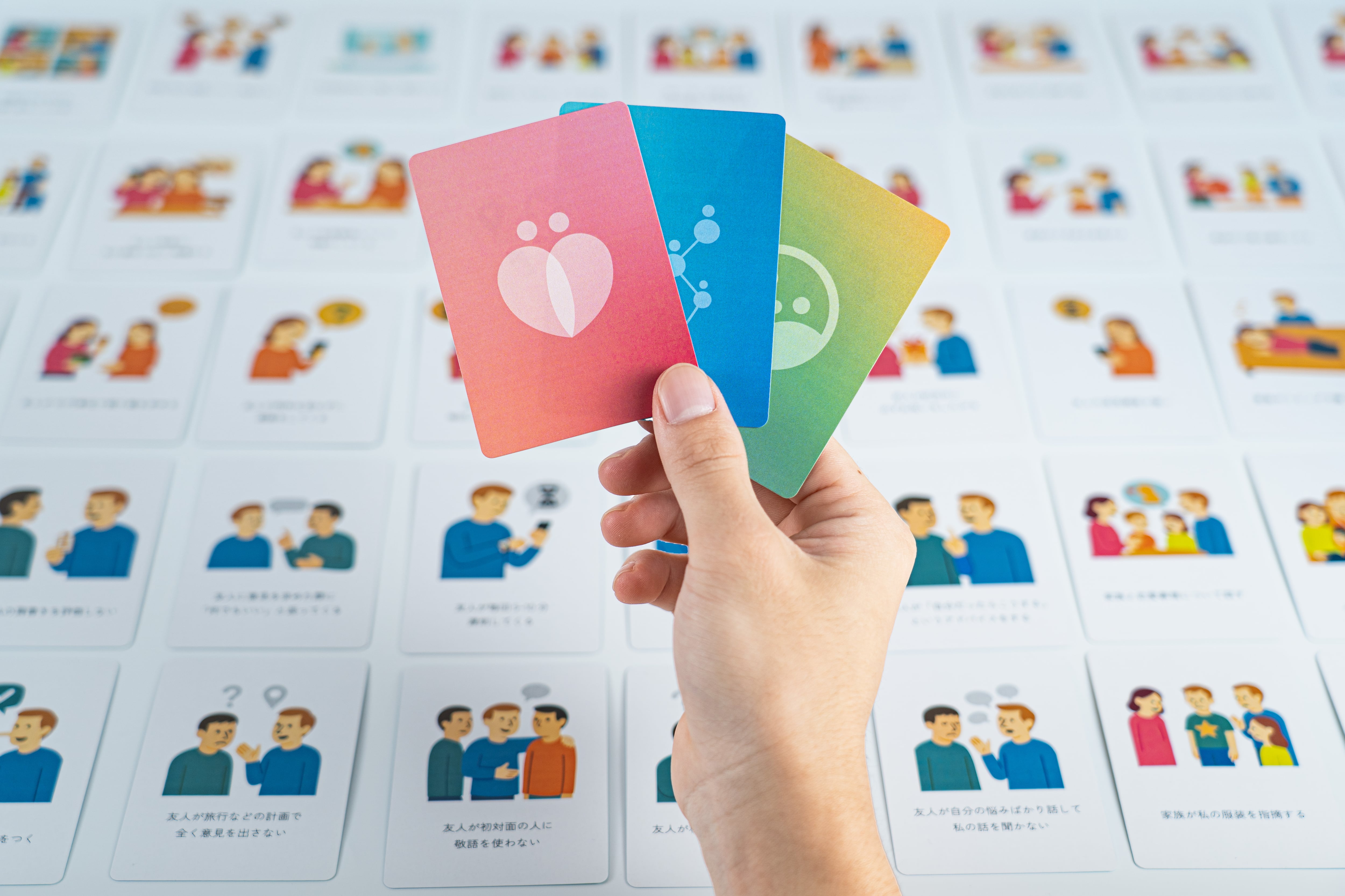 家族、カップル、友人、学校やワークショップでも楽しく使えるゲームです。