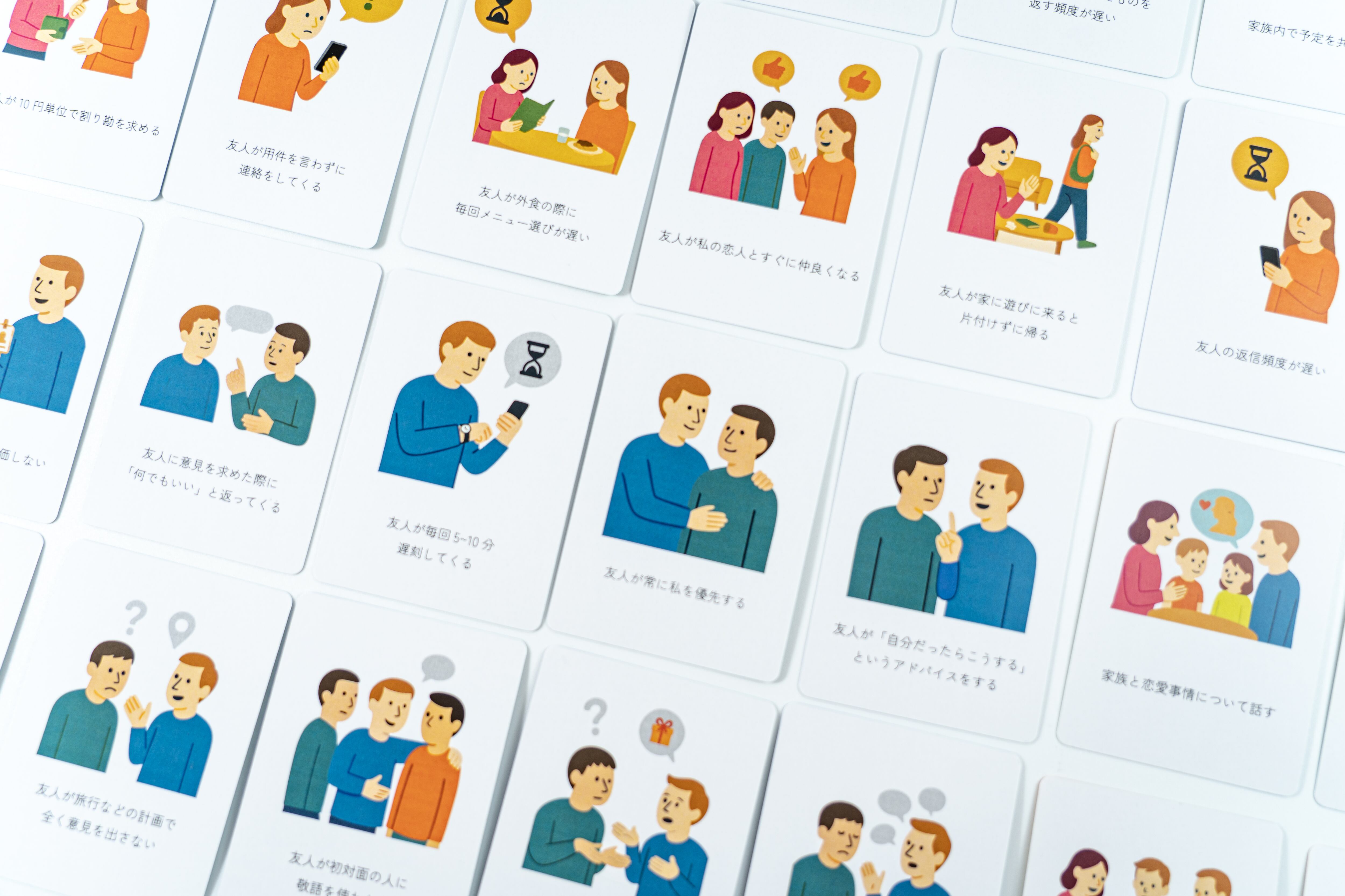 気持ちが近いとポイント、ズレると会話が生まれ、自然と理解が深まるようにつくられています。